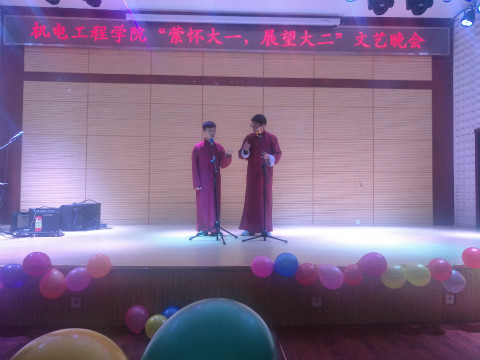 晚会开始前播放了16级同学们这一年来的学习生活所参加的活动的视频。当大家坐在一起,共同回顾这一年来走过的青春之路,不禁感慨时光流逝,岁月如斯。在主持人宣布晚会正式开始,晚会节目精彩纷呈,不仅请到了街舞社和吉他社友情出演,给大家带来精彩的歌舞表演,我们机电学院的男生们多才多艺,在舞台上显示自己才华,优美的歌曲,精湛的乐器演奏,幽默诙谐的相声引人入胜,博得台下的阵阵掌声。美好的时光总是短暂的,经过细心挑选、编排的文艺节目在大家热烈欢呼中开始,在意犹未尽中结束。