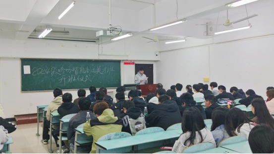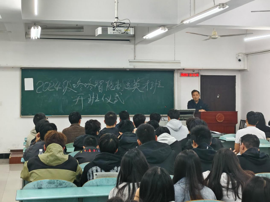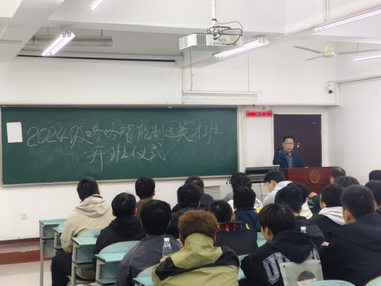 【机电工程学院 李慧敏讯】为深入贯彻落实国家关于产教融合、校企合作的决策部署,10月23日下午,湖北轻工职业技术学院机电工程学院2024级咚咚智能制造英才班开班仪式在教学楼B405举行。出席本次仪式的有:武汉咚咚英才教育科技有限公司校企部经理苟超越,武汉华工正源光子技术有限公司人力资源部副总监赵志勇,机电工程学院党总支书记、院长洪凯,自动化教研室主任孙敏,自动化专业负责人李燕,机器人专业负责人常虹以及24自动化专业的同学们。仪式由辅导员李慧敏主持。