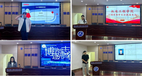 本次选举秉持公平、公正、公开的原则,共有25位优秀候选人入围最终竞选。在竞选演讲环节,各位候选人依次登台,以饱满的精神、清晰的思路,充分阐述了对学生工作的热爱、对未来工作的规划以及服务同学的决心,展现了机电工程学院学子昂扬向上、敢于担当的卓越风采。