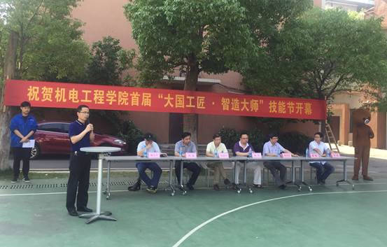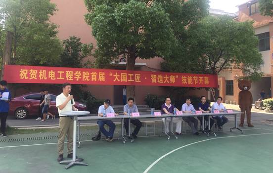在热烈的掌声中,徐兵院长为本届技能节开幕式致辞。徐院长在发言中强调了以习近平同志为核心的党中央对高等职业教育的重视,要努力培养数以亿计的高素质劳动者和技术技能人才;对我校及机电学院这几年在全国和全省职业技能大赛上取得的成绩和突破给予了肯定,并对机电工程学院首届“大国工匠-智造大师”技能节寄予了殷切的期望,希望机电学子们充分利用技能节这个平台,将自己打造成真正的大国工匠、智造大师。