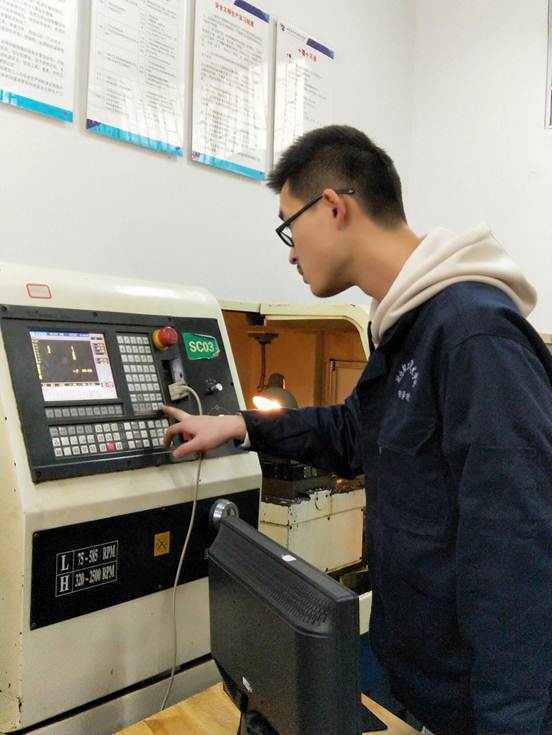 本次大赛赛题借鉴了往年湖北省选拔赛的比赛图纸,比赛时长为4小时。选手通过抽签确定自己的参赛号码和机床工位,运用计算机自动编程进行零件的数控车削加工。在大赛期间,副校长陈向斌老师百忙之中仍抽出时间亲临比赛现场指导观摩。
