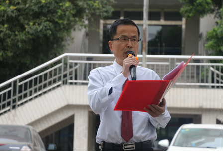 图三 机电工程学院张恕院长在国旗下的演讲