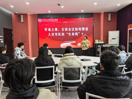 活动现场,宋老师先对“古田会议”为何召开、解决了什么问题以及相关影响进行了系统的讲解,过程中对学生提出了“你认为的人民军队是什么样子”的问题进行了详细的回复,与本次活动的主题进行了呼应“人民军队起源于古田会议”。随后,老师为同学们调整好VR设备,同学们瞬间仿佛置身于古田会议的历史场景之中。