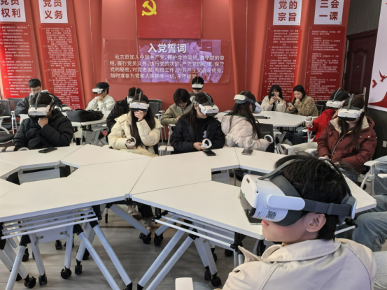 【机电工程学院党章记者团周绍乐讯】为推动党史学习教育走深走实,让红色历史“活”起来,12月18日,由马克思主义学院开展的党史VR体验活动在A212开展。此次活动由宋宗丹老师带领机电工程学院的21位团员进行。