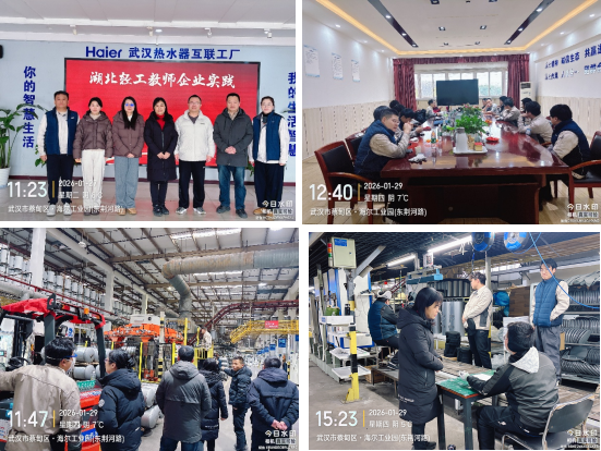 (机电工程学院李婷讯)2026年1月25日至1月30日寒假期间,机电工程学院聚焦“双师型”教师队伍建设、深化校企协同育人两大核心,组织专业教师赴武汉海尔热水器有限公司,开展沉浸式企业实践暨实习学子走访关怀活动。在机电一体化专业教研室主任尹久统筹协调下,机电专业负责人李婷、骨干教师钟诚、博士韩钰、机制教研室主任李丽君五位教师组成实践团队,扎根企业生产一线,以实地研学、深度调研的务实行动,筑牢产教融合根基、践行立德树人使命。