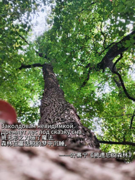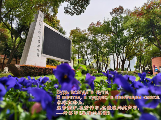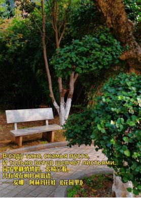 图三、同学们为校园花草春景融入了叶赛宁、阿林玛托娃的经典俄语诗句