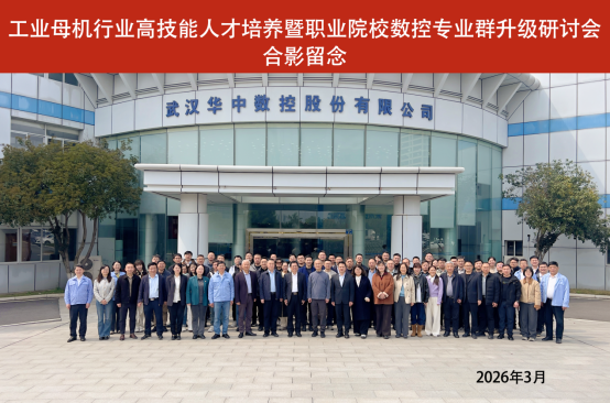 (机电工程学院 林晖讯)2026年3月25日,由中国机床工具协会指导、全国高档数控系统和智能装备产教融合共同体主办、武汉华中数控股份有限公司和无锡职业技术大学共同承办的“全国工业母机高技能人才培养暨数控专业群升级研讨会”在武汉隆重举行。来自行业协会的领军代表、制造业龙头企业负责人以及全国数十所职业院校的专家学者齐聚一堂,共商制造业根基人才培养之大计。我校机电工程学院院长洪凯、数控技术教研室主任林晖应邀参与会议和研讨。