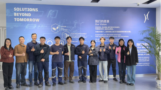 图4、生产部门经理史涛(左三)与学生代表、教师团队合影