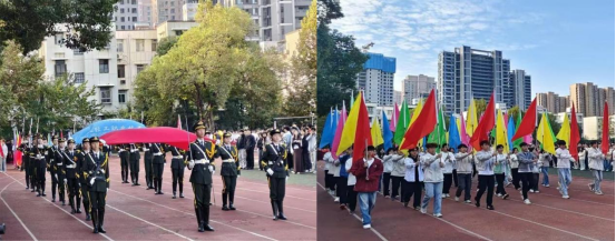 运动会开幕式上,国旗护卫队高举国旗与校旗,步伐铿锵地走过主席台接受审阅。彩旗队、以及各学院方阵依次入场,精神抖擞,意气风发。其中,机电工程学院的学子们步伐整齐、口号响亮,以昂扬的姿态展现了学院锐意进取、追求卓越的风采。