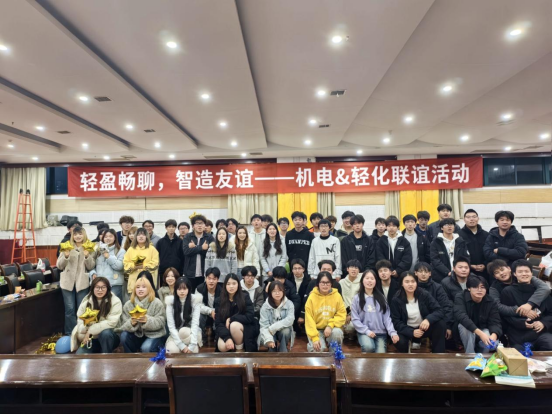 【机电工程学院秘宣部 熊畅讯】为打破院系沟通壁垒、搭建学生干部交流平台,增进成员了解信任,提升团队协作能力,12月11日,机电工程学院团总支学生会联合轻化工程学院团总支学生会,于学术报告厅成功举办“轻盈畅聊,智造友谊”跨院团建活动,两院学生会成员齐聚一堂,共赴青春之约。
