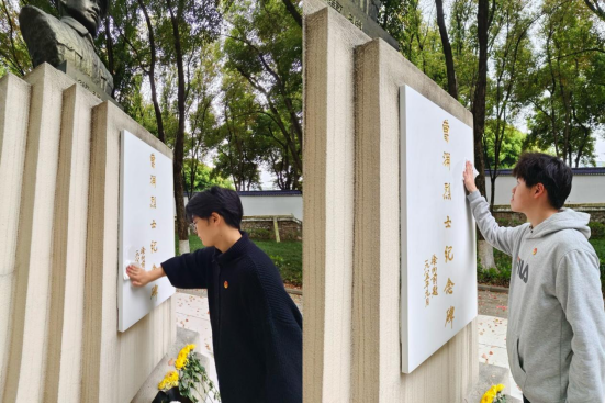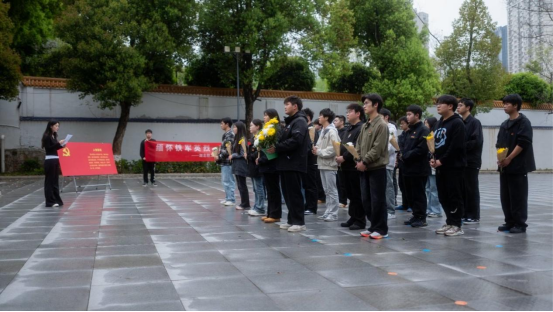 随后,伴随着悠扬的小提琴曲《我和我的祖国》,依次向烈士敬献鲜花,在活动横幅上郑重签名,用朴素的方式寄托哀思。最后,宣誓环节,铮铮誓言铿锵有力,彰显着青年学子传承英烈精神、勇担时代使命的坚定决心。