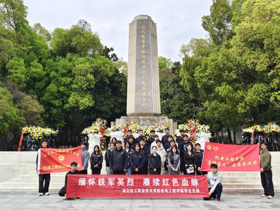【机电工程学院党章记者团周绍乐讯】清明雨绵,哀思寄远。4月2日下午,湖北轻工职业技术学院机电工程学院组织学生支部、党章学习小组成员,前往武汉市武昌区北伐独立团烈士陵园开展“缅怀铁军英烈,赓续红色血脉”清明祭扫活动,在庄严肃穆的氛围中追忆英烈事迹,感悟铁军精神。